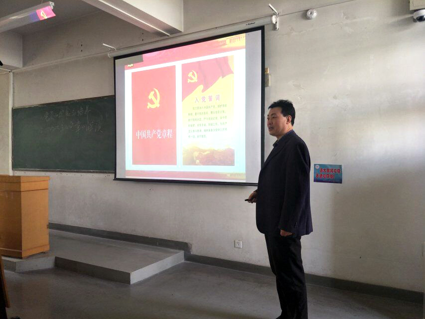 学院党委副书记王招祥给全体入党积极分子作了《新<党章>解读与党员的发展培养》的党课,王书记从党员的发展程序、党员的培养教育、党章的地位和作用、党章的发展历程、如何学习实践党章进行了讲解,重点对十九大党章的新内容进行了分析和解读。
