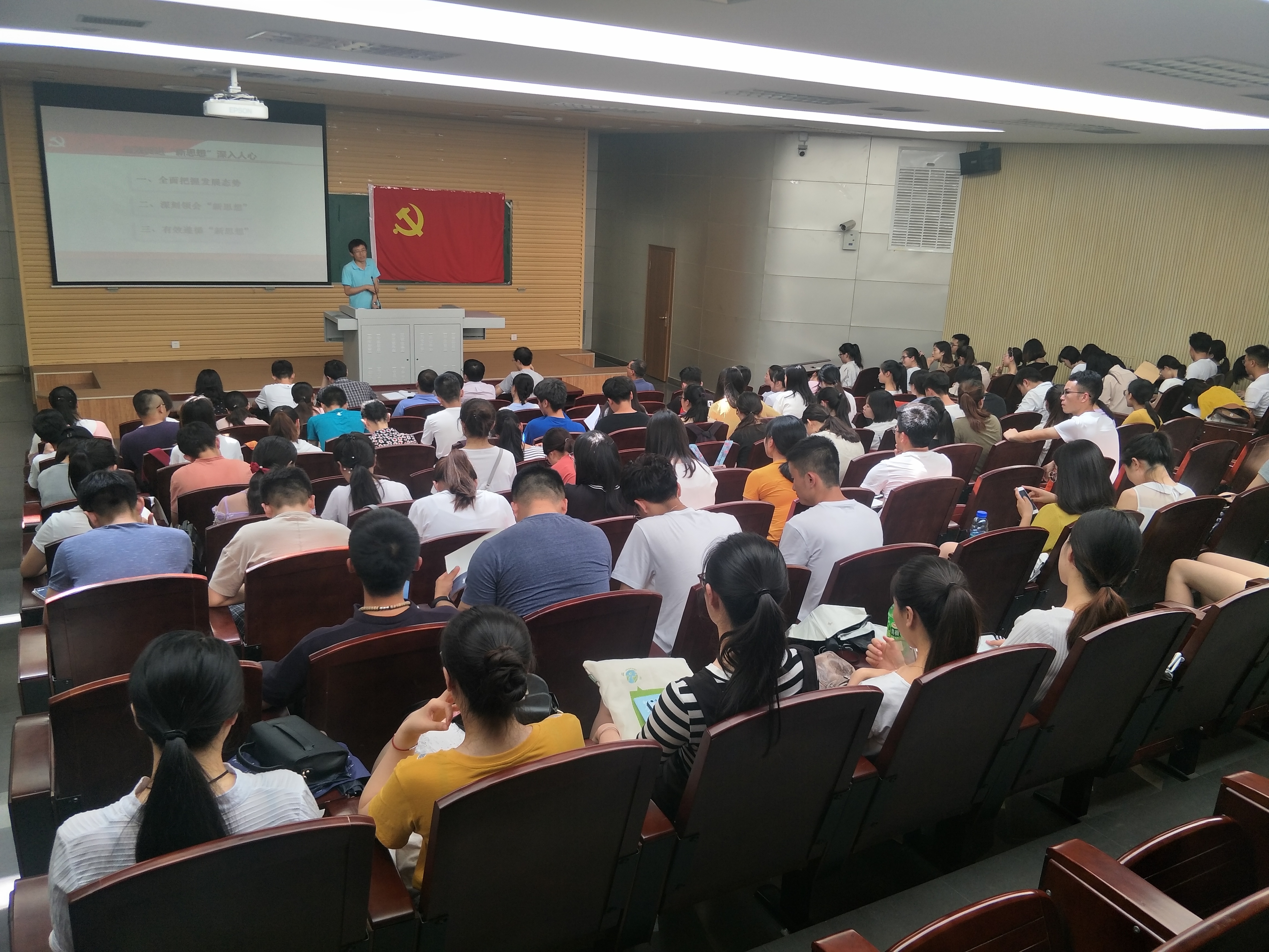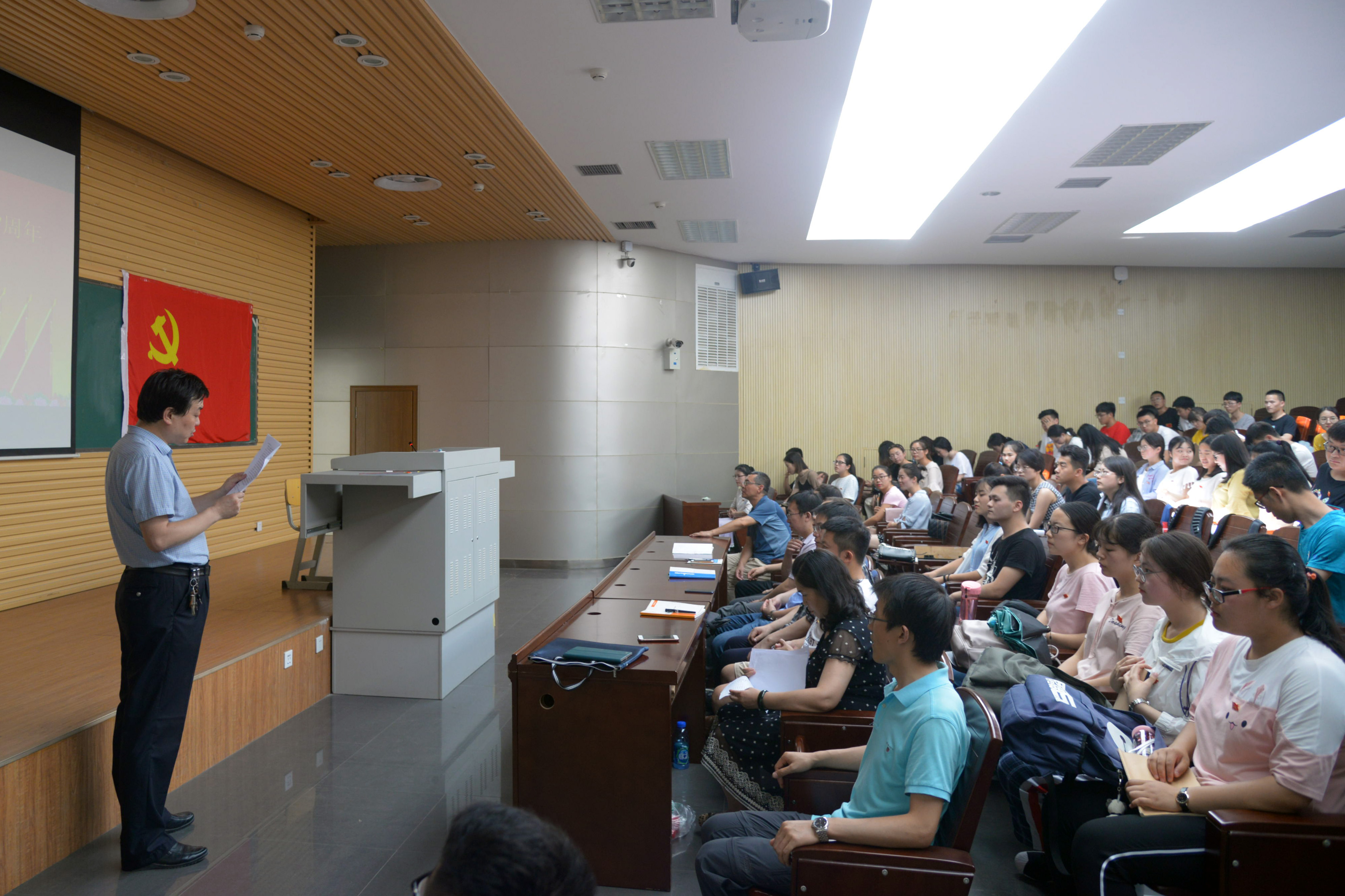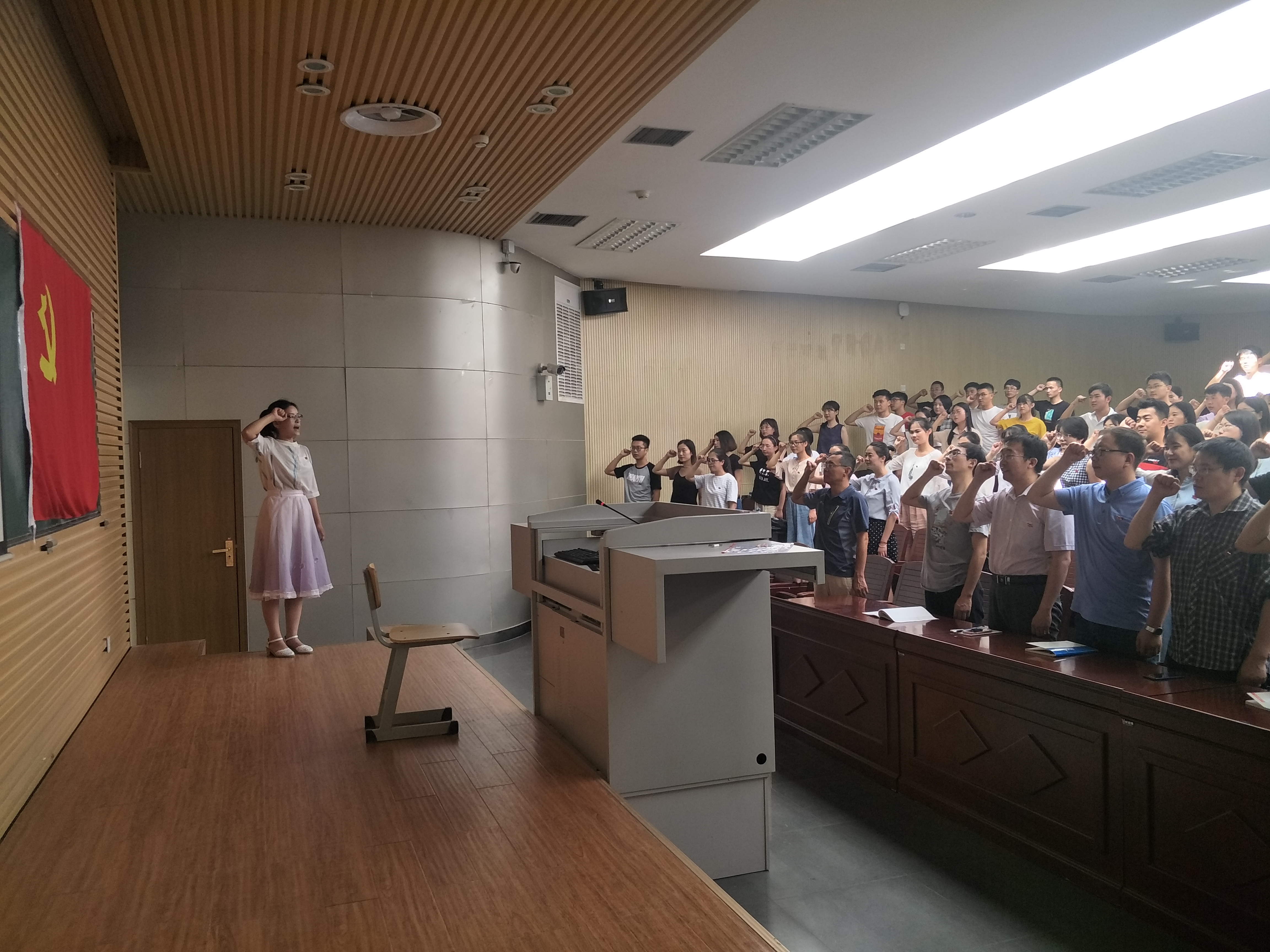 6月28日下午,学院党委举行研究生、本科生党支部“庆祝建党97周年”主题党日活动,举办了为新党员佩戴党徽、新党员入党宣誓仪式、老党员重温入党誓词和专题党课。学院党委委员、学生党支部书记、学生辅导员以及研究生、本科生党支部共计175名党员出席活动。主题活动由王招祥副书记主持。