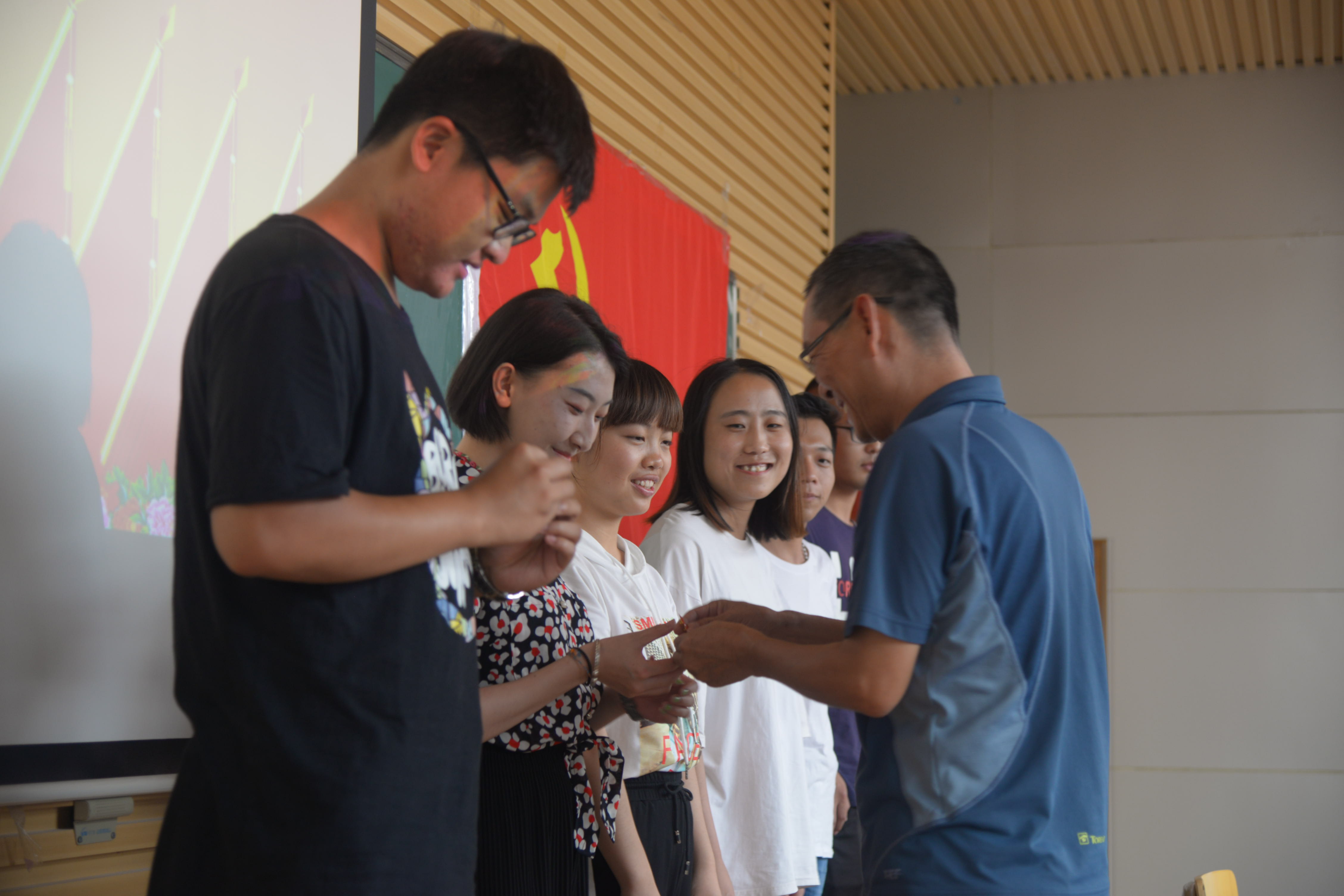 45名新党员入党宣誓仪式在庄严的《国歌》中拉开了序幕。学院党委委员和支部书记为全体新党员佩戴了党徽。全体新党员面向党旗挺胸肃立、高举右拳,在领誓人安晓艳老师的带领下郑重宣誓。全体老党员集体重温了入党誓词,再次在党旗下郑重承诺,不忘初心,坚定信念,为党和人民的事业努力奋斗。