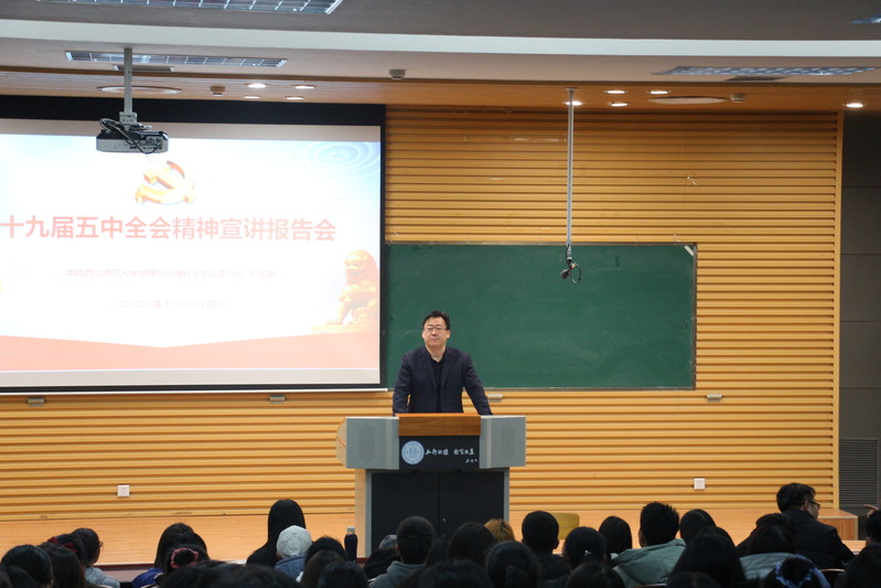 11月24晚,英国上市公司官网365党委书记于国建在新校区毅然第二报告厅为学院学生做十九届五中全会精神宣讲报告。学院党委副书记王招祥主持报告会,学院辅导员、学生党员及学生代表近300人到场聆听了报告。