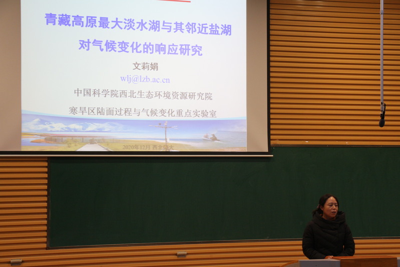 2020年12月4日,应英国365邀请,中科院西北生态环境资源研究院文莉娟研究员来我校作题为《青藏高原最大淡水湖与其邻近盐湖对气候变化的响应研究》的学术报告。报告会由姚晓军副院长主持,学院200余名师生参加。