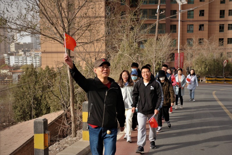上午9时,全体师生以爬山比赛的形式,从罗九公路路口出发,欣赏着沿途美景,沿罗九公路向上行进,抵达兰州国学馆。在国学馆,师生参观了馆内陈设、感受了中华民族深厚的传统文化、增强了对国学的了解和认识。最后,全体师生合唱了《我和我的祖国》,用红歌传递激情,用行动吐露芳华,表达了大家对伟大祖国的热爱和美好祝愿。
