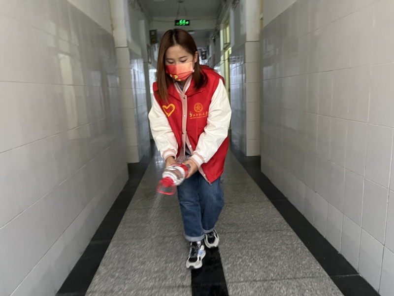 “有时间做志愿者,有困难找志愿者”。在疫情防控期间,志愿者们每天穿梭在学校的各个角落,为同学们开展志愿服务活动,哪里有困难,哪里就有志愿者的身影。为做好学生宿舍每天的消杀工作,志愿者们不辞辛苦,每天早上为各个宿舍发放消毒片,出入通行卡等,对各个楼宇和楼层做好消杀、通风工作。此外,志愿者还主动承担接送隔离同学的任务,为隔离点的同学送热水喝送热饭吃。