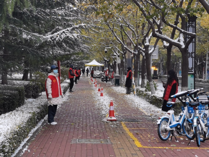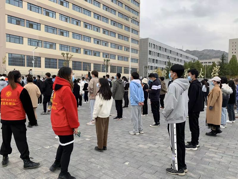 为协助学院做好全员核酸检测工作,青年志愿者们牺牲自己的休息时间,分别在兰天公寓、校本部、新校区协助辅导员老师集合学生队伍,维持现场秩序,引导各位同学有序进行核检。