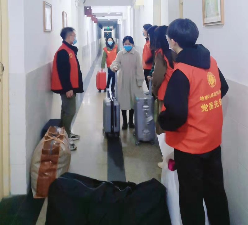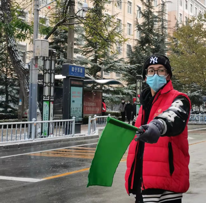 在兰天公寓、党校公寓、校本部、新校区等门口,一件件“红马甲”志愿者在人群中显得格外显眼,胸前的党徽、团徽在阳光下熠熠生辉。在萧瑟的寒风中,志愿者们坚守岗位,在别人用餐的时候参加人流疏散工作,协助后勤工作人员码放桌椅、停放车辆、粘贴地面间隔条。“同学,请带好口罩,保持1米间距有序通行”“同学,请出示通行卡和健康码”,一句句温馨的提示语,蕴含着的是坚定不移做好防疫工作的决心和信心。地环学院志愿者们舍小我、为大家,为深秋增添了一抹别样的“红色”。