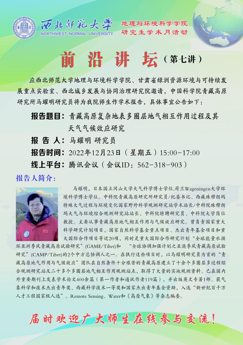 英国365研究生学术月活动系列之三——前沿讲坛:07 青藏高原复杂地表多圈层地气相互作用过程及其天气气候效应研究