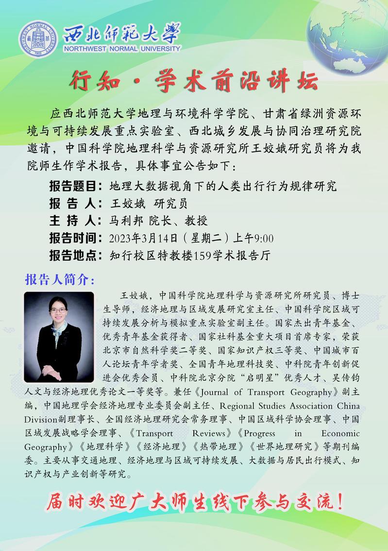 英国365行知•学术前沿讲坛 2023-01期:地理大数据视角下的人类出行行为规律研究