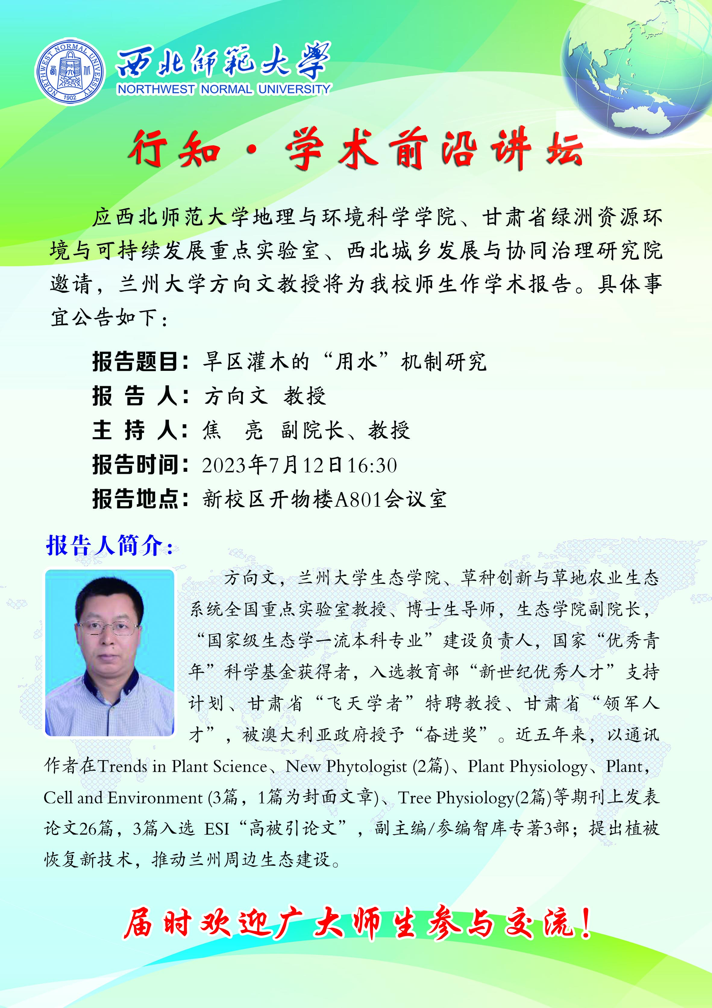 英国365行知•学术前沿讲坛 2023-07期:旱区灌木的“用水”机制研究