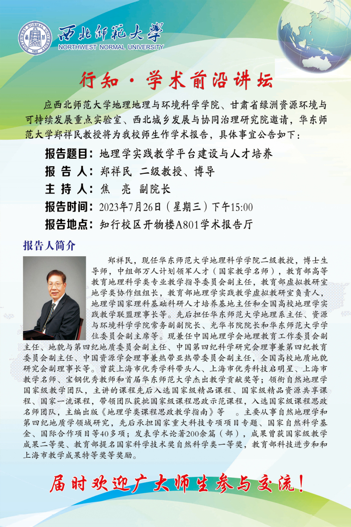英国365行知•学术前沿讲坛 2023-09期:地理学实践教学平台建设与人才培养