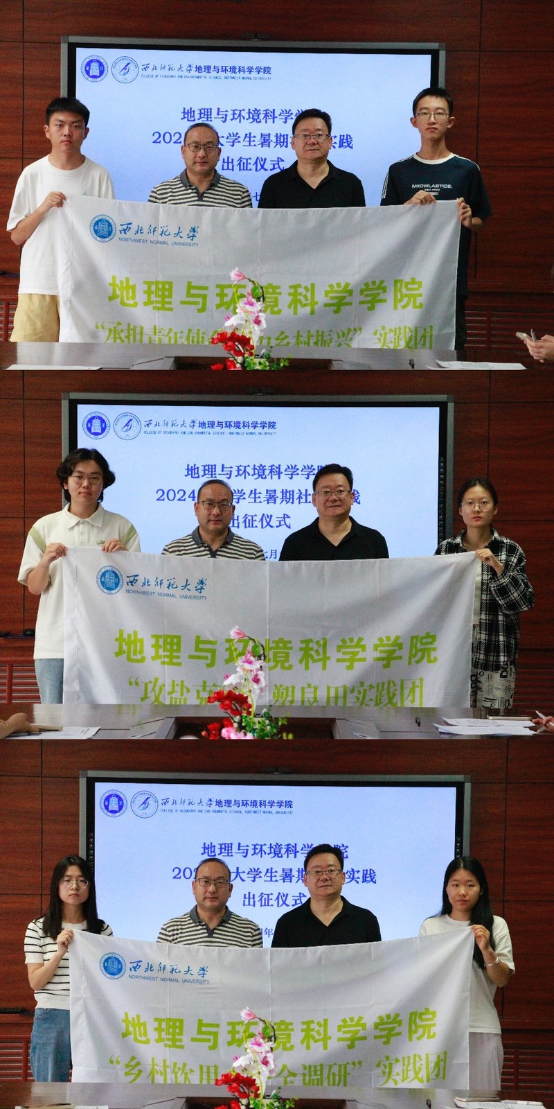 仪式开始,团委书记曹珍璇从组织保障、队伍选拔等方面对学院2024年大学生暑期社会实践筹备工作进行了详细的说明,2024年学院团委积极响应校团委暑期社会实践工作的通知要求,组织申报并获批立项实践队伍3支,分别为谢文涛、牛粉霞老师带队的“承担青年使命,助力乡村振兴”实践团,朱国锋老师带队的“攻盐克碱塑良田”实践团,瞿德业老师带队的“乡村饮用水安全调研”实践团。此外,由谢文涛、牛粉霞老师带队的“礼遇雅言”实践团入选“2024年推普助力乡村振兴”全国大学生暑期社会实践志愿服务活动团队。四个实践团总计参与师生60余人次,将赴甘肃省多地开展乡村振兴活动。