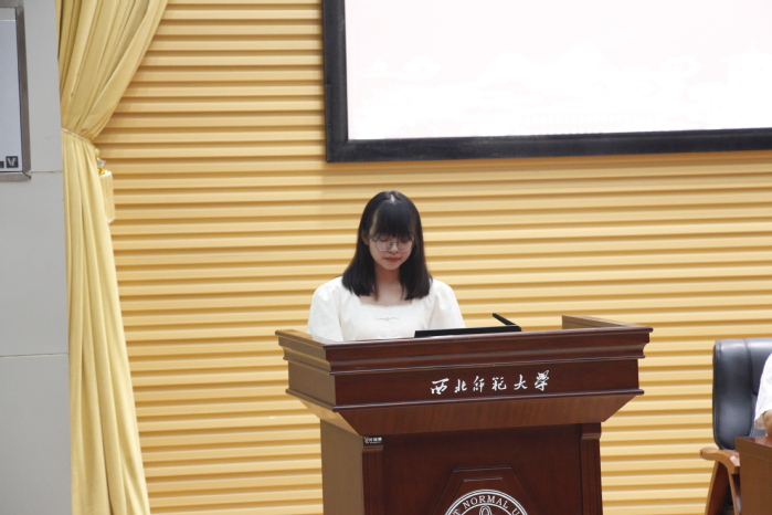 地理科学2班李若阳同学代表本科新生在发言,表达了自己对专业的热爱,立志作为新时代的青年,努力成长为德智体美劳全面发展的社会主义建设者和接班人。