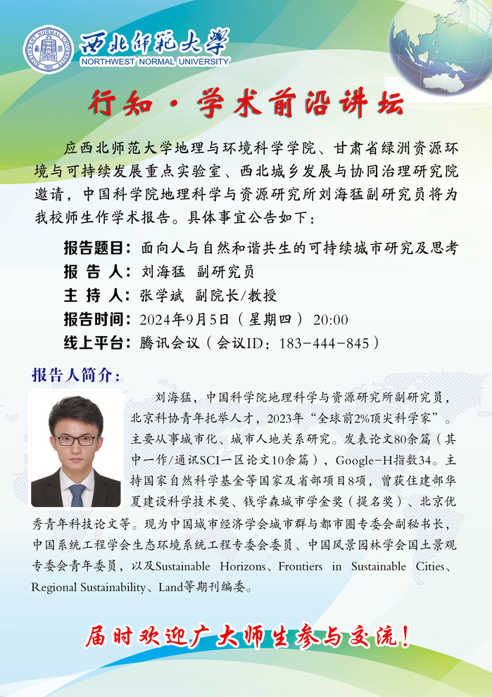 英国365行知•学术前沿讲坛2024-12期:面向人与自然和谐共生的可持续城市研究及思考