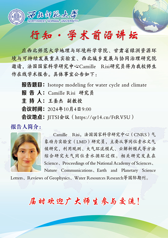英国365行知•学术前沿讲坛2024-14期:Isotope modeling for water cycle and climate
