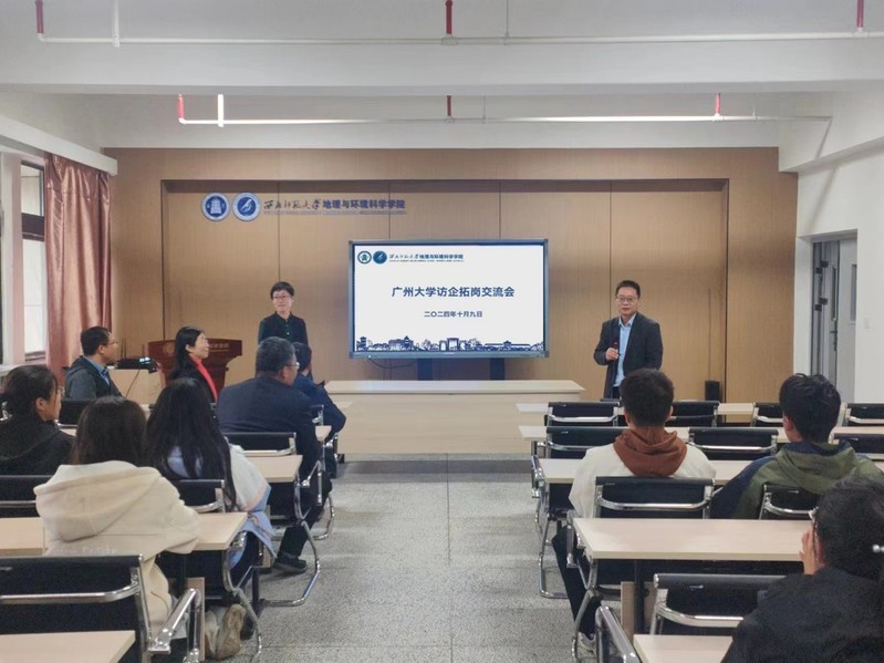广州大学环境工程系硕士学位点负责人张伟老师介绍了广州大学的历史沿革、机构设置、师资力量、学科建设、以及近年的人才需求、发展前景等内容并与现场毕业生就研究生报考等事宜进行了广泛沟通和交流。