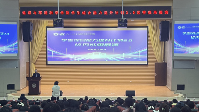 展演活动最后,马利邦院长在总结讲话中强调:学院学生综合能力提升计划即“1416”工程是学院高质量人才培养的重要组成部分,通过系列活动的实践和锻炼,学生的综合能力得到了显著提升,同学们在地理知识的理解和掌握,实践能力、创新思维和团队协作等方面都得到了全面锻炼和提升,这是学院学生工作与学院教育教学工作高度融合的一次探索和尝试。未来,学院将充分发挥学生第二课堂的辅助作用,将“1416”工程与各专业人才培养方案紧密结合,对标培养目标和毕业要求,注重培养学生的创新精神和实践能力,为同学们未来的职业发展和创新就业打下坚实的基础,促进学生的全面发展和成长成才。