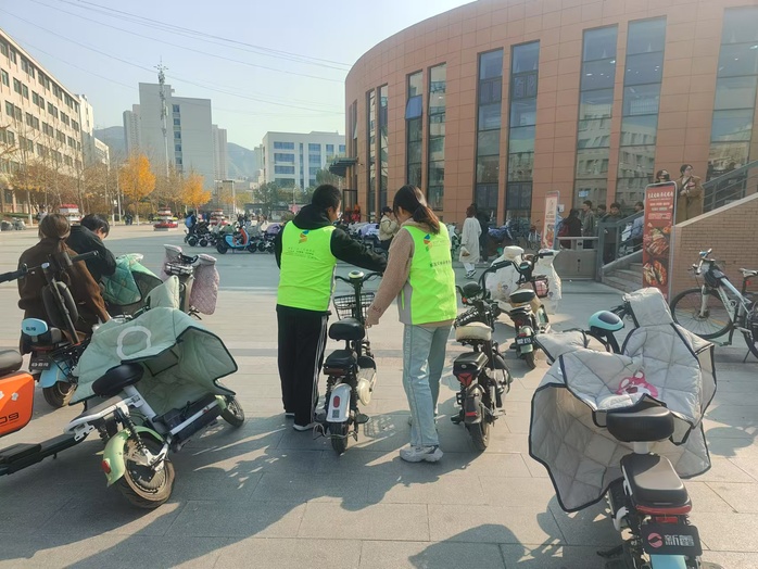 活动期间,志愿者们身着统一服装,在校园各主要路口和电动车停放区域进行引导。他们向过往的电动车骑行者发放交通安全宣传资料,耐心讲解交通安全知识,重点强调佩戴安全头盔、不超速、不逆行、不违规载人等安全事项。