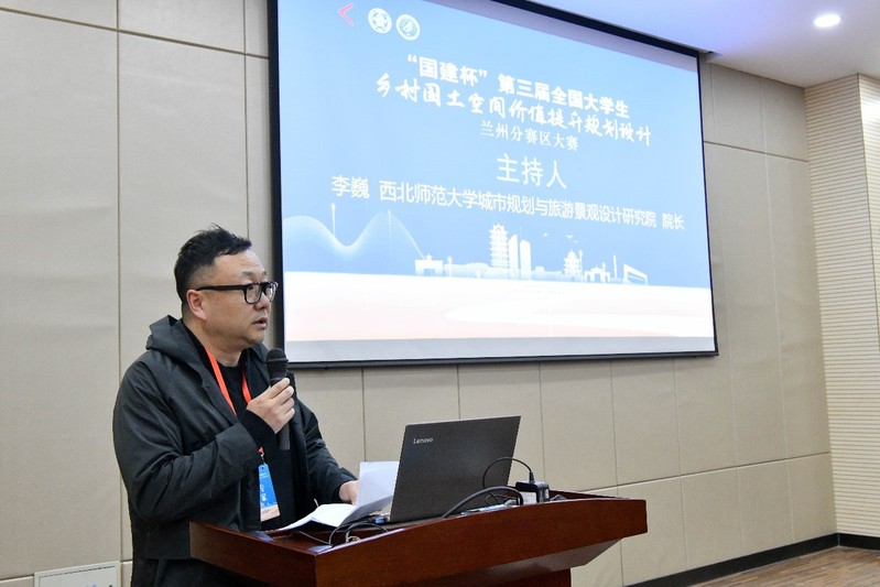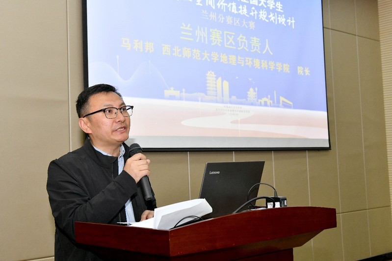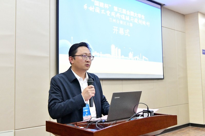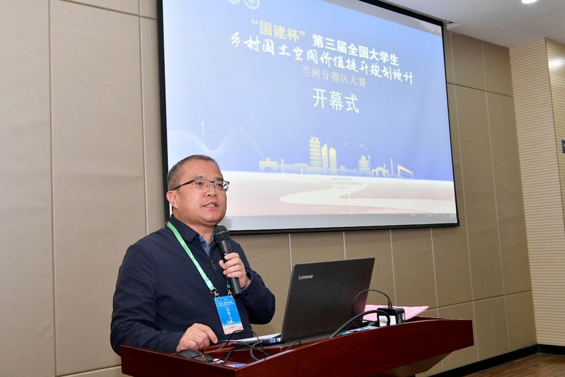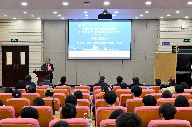 随后,兰州市城乡规划设计研究院陈玉虎院长代表评委组讲话,甘肃农业大学资源与环境学院学生柯钰雪同学代表参赛队员宣誓。