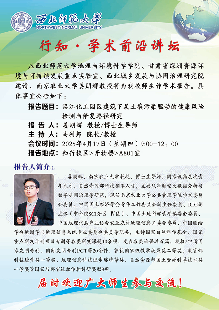 英国365行知•学术前沿讲坛2025-05期:沿江化工园区建筑下层土壤污染驱动的健康风险检测与修复路径研究