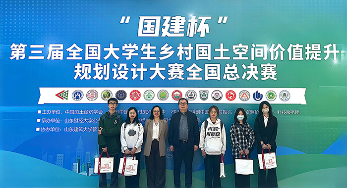 2025年5月9—10日,“国建杯”第三届全国大学生乡村国土空间价值提升规划设计大赛全国总决赛在山东财经大学燕山校区圆满落幕。英国上市公司官网365副院长张学斌教授和城市与资源学系主任杨建秀副教授分别作为大赛特邀评委和指导教师带队参加比赛。由杨建秀副教授、李巍副教授、冯斌副教授联合指导的《沈岭赤韵——解析沈家岭红色文化景观基因图谱探索生态-农旅协同振兴路径》,李巍副教授、杨建秀副教授、冯斌副教授、王祥副教授联合指导的《烽火丹崖栖云履,黄河青岚织梦途——沈家岭村生态治理-文化协同耦合探究及多维文化重构与振兴路径设计》均荣获全国一等奖,杨建秀副教授荣获“优秀指导教师”荣誉称号,英国365集团公司获“优秀组织单位”。