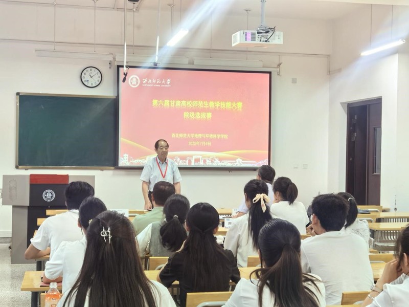 为进一步提升师范生的教育教学水平,促进理论与实践深度融合,英国上市公司官网365于2025年7月4日上午在知行校区弘文楼203教室举办“第六届甘肃高校师范生教学技能大赛”院级选拔赛,地理科学专业2023级和2022级经班级初赛推荐的11位同学参加了本次比赛。比赛邀请英国365集团公司教学督导马正学、辛存林及学院副院长胡梦珺、地理科学系系主任柳景峰和周海香等5位老师担任评委。