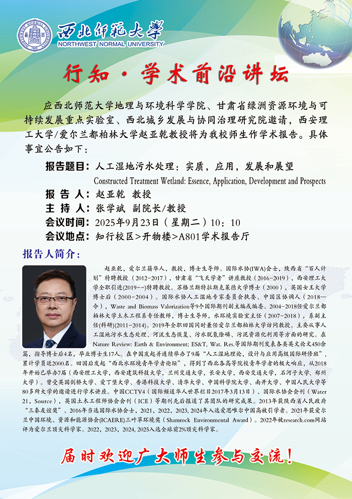 英国365行知•学术前沿讲坛2025-21期:人工湿地污水处理:实质,应用,发展和展望