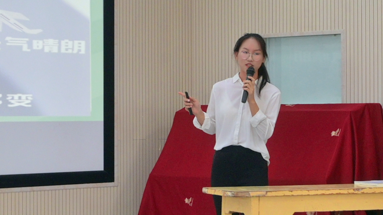 芦心笛同学带来的《气象科普进课堂——天气预报》将现场气氛推向高潮。从古时农人的谚语,到现代各项先进的仪器,让同学们在愉快的互动中了解了天气预报的“前世今生”,现场热烈的气氛让我们看到,科学的种子已然播下,未来探索天空奥秘的梦想,或许就在此刻被点燃。