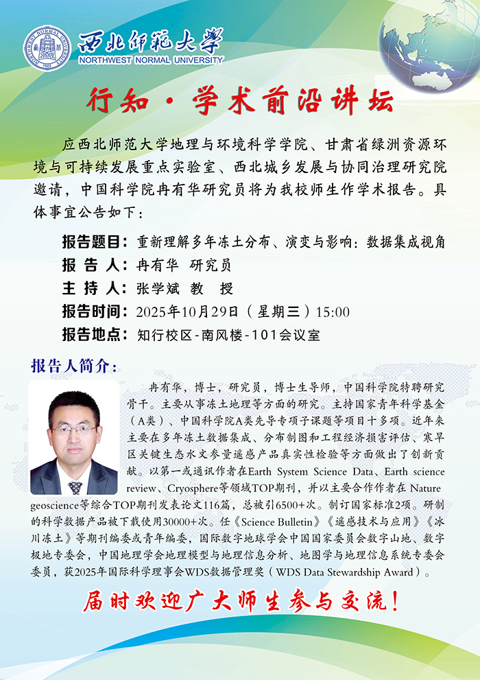 英国365行知•学术前沿讲坛2025-22期:重新理解多年冻土分布、演变与影响:数据集成视角
