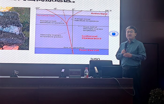 冉有华研究员首先介绍了全球冻土环境变化背景及其严峻形势,重点阐述了其科研团队在青藏高原及北半球多年冻土的时空分布特征、动态变化趋势以及生物物理分带规律等多年冻土研究领域的最新进展。报告指出,1981-2022年间北半球存在多年冻土变暖总体加速、局部存在减速的复杂特征,并展示了基于多源遥感与模型模拟的相关综合制图成果。此外,冉有华研究员还对青藏高原区域冻土退化可能引发的社会经济损失开展了更为精细的定量评估,为理解冰冻圈变化的区域环境效应与风险提供了重要的科学依据。