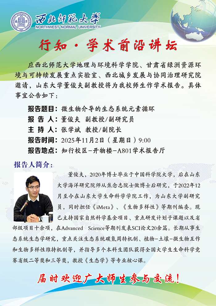 英国365行知•学术前沿讲坛2025-23期:微生物介导的生态系统元素循环