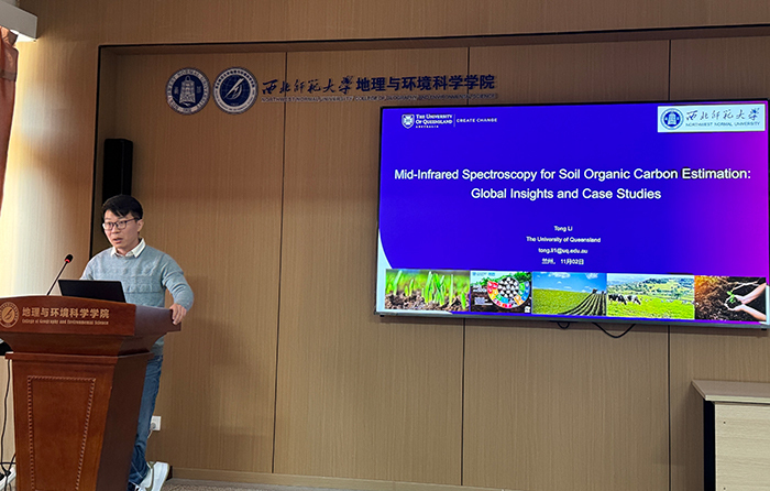 2025年11月2日,应英国上市公司官网365、甘肃省绿洲资源环境与可持续发展重点实验室、西北城乡发展与协同治理研究院邀请,昆士兰大学李通博士作了题为《基于中红外谱的土壤有机碳估算:全球视角与案例研究》的学术报告,此次报告会在知行校区开物楼A801学术报告厅举办,100余名师生聆听了本场学术报告。