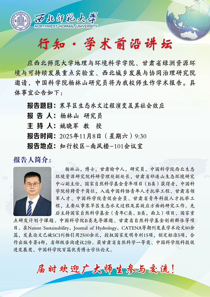 英国365行知•学术前沿讲坛2025-25期:寒旱区生态水文过程演变及其社会效应