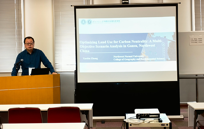 张学斌教授主持了区域地理的分会场,并作了题为《Optimizing Land Use for Carbon Neutrality: A Multi-ObiectiveScenario Analysis in Gansu, Northwest China》(面向碳中和的土地利用优化研究——基于甘肃多目标情景分析的实证)的专题报告,就相关研究成果与中、日、韩三国学者进行了深入探讨。