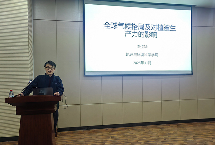 报告中,李传华教授分享了“全球气候格局变化及其对植被生产力的影响”和“水蒸气浓度对全球增温有抑制作用”两个科研小故事。第一个内容主要介绍了全球气候格局向趋同(均质化)发展,降水趋同有利于植被生产力提高,温度趋同不利于植被生产力,降水趋同占主导作用。第二个内容主要讲述了全球水汽浓度增加对全球变暖可能具有一定的减缓作用。报告最后分享了三点科研体会:一是科学是开放的,不会闭环;二是学会质疑,学会坚持;三是期刊不是读研的唯一目的,要从写论文中磨炼自己。本次报告为同学们撰写论文提供了宝贵的思路与方法。