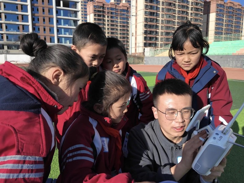2023级地理信息科学1班孙冰冰同学与李紫桐同学带来《天眼探秘 无人机解码地球》科普课,通过无人机实操演示、遥感影像解读,向同学们展示地理信息技术如何“看清地球”,从灾害监测到城市规划的应用场景,让孩子们直观感受科技赋能地理研究的魅力,埋下科学探索的种子。